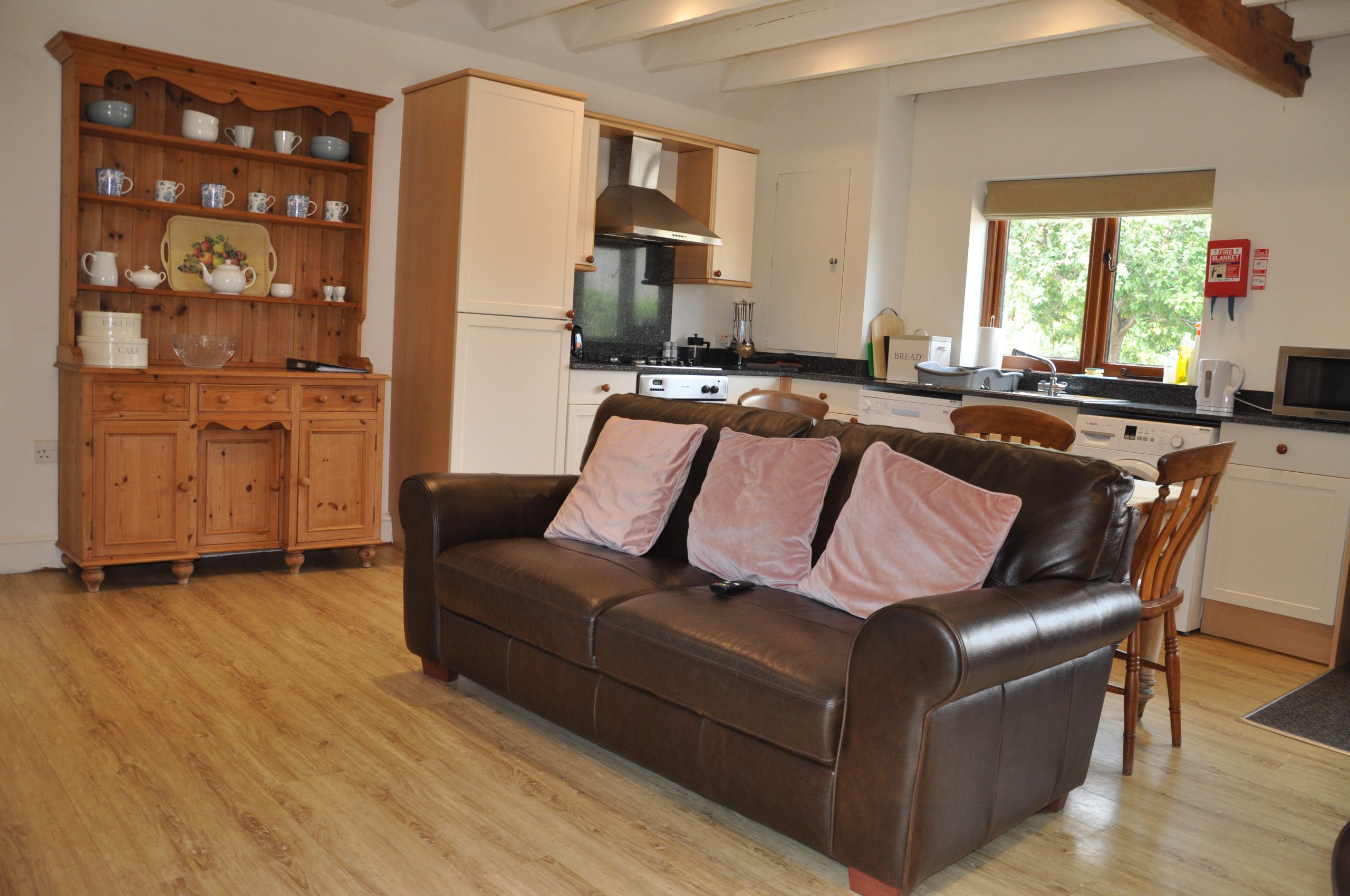 Open plan living area with seating area, Wi-Fi, smart TV, incorporating a well equipped Kitchen with electric oven, gas hob, washing machine, dishwasher, microwave, fridge/freezer and dining area with a table to seat 3. There are hairdryers, iron and ironing board.